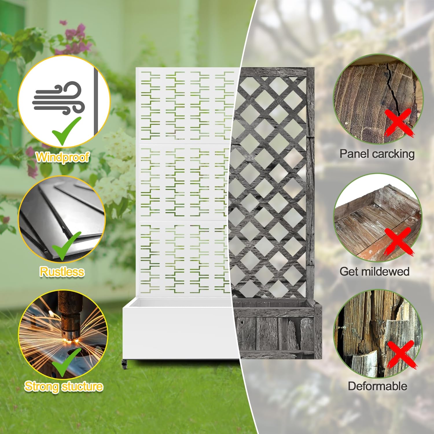 - 【Space-Saving Design】The combination of the planter box and trellis saves space while offering an attractive garden bed. This space-efficient solution is ideal for gardening enthusiasts facing space constraints, allowing them to cultivate beautiful gardens even in limited areas.