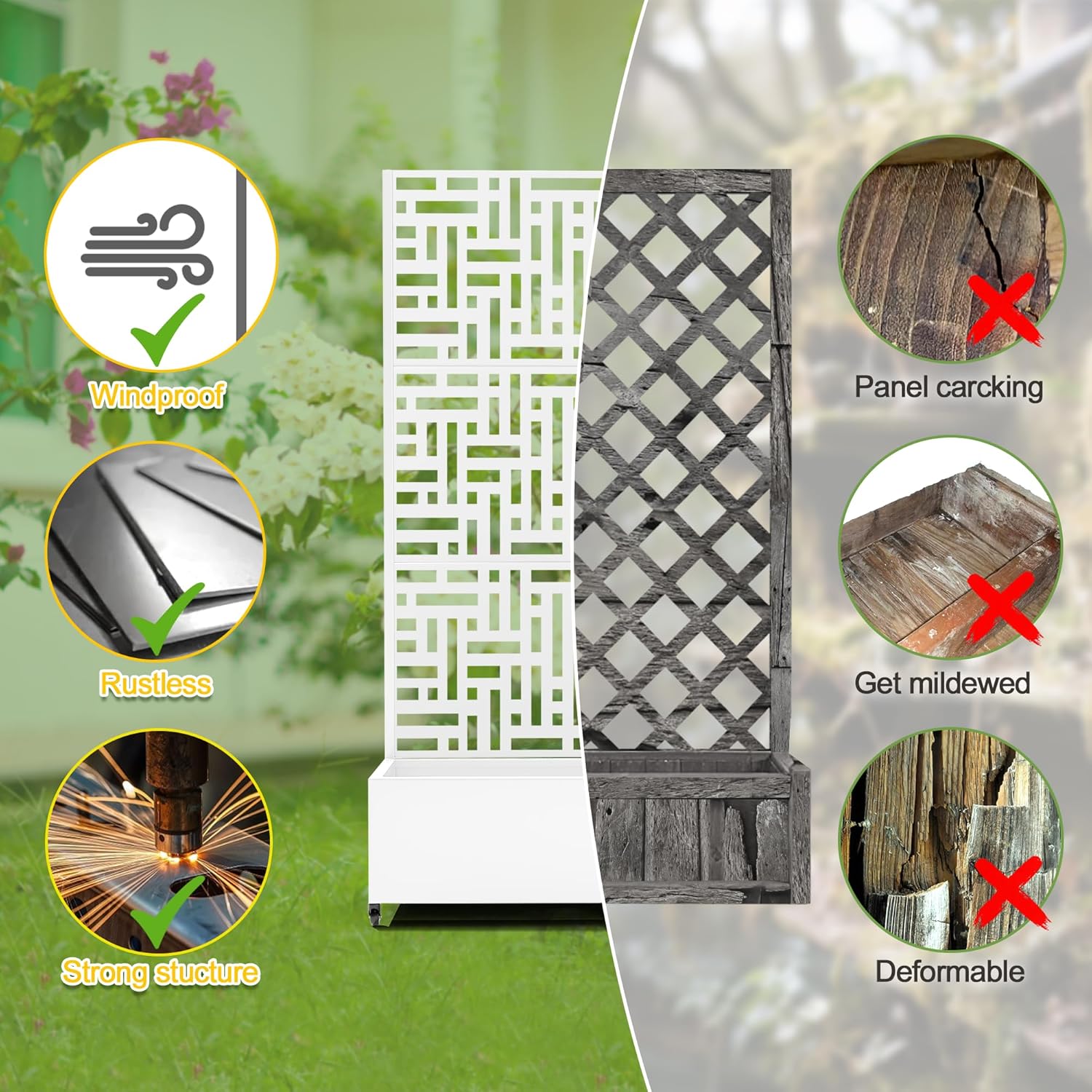 FENCY Metal Raised Garden Bed with Wheels and Trellis,73"x35"x16" Planter Box for Climbing Plants, Vegetables & Vines, Features Privacy Screen and Drainage Holes (White-Geometric Lattice)