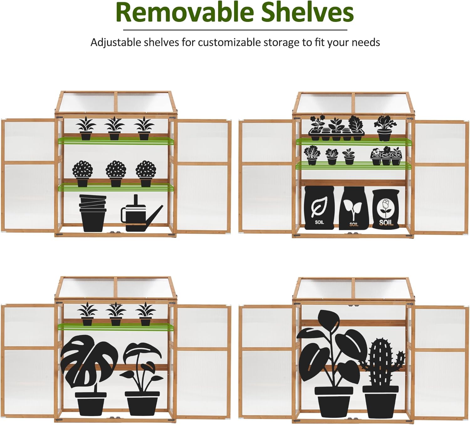 - 2 Adjustable Shelf: The shelves of this garden cold frame could be freely adjusted height to fit various types of plants, which meets all your needs
