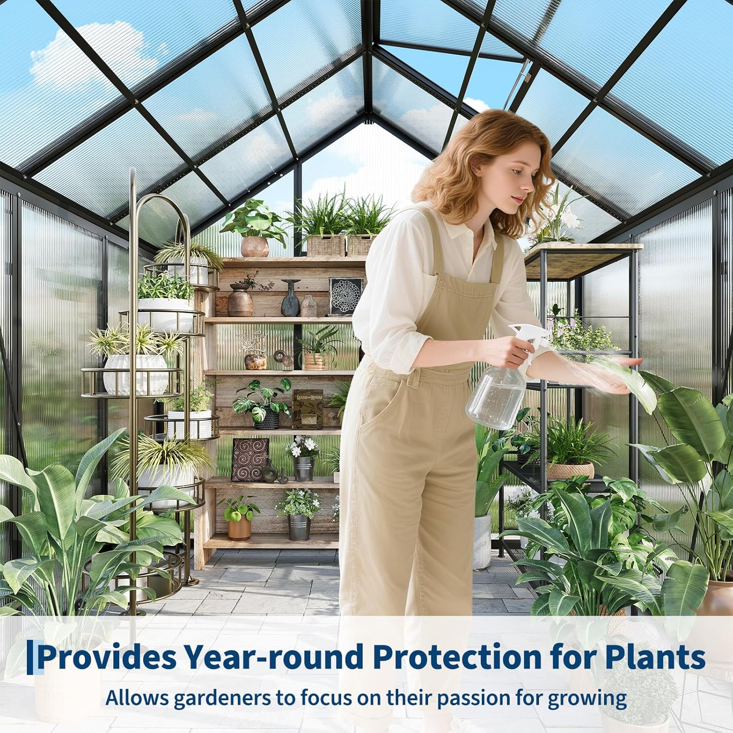- 【 High-Performance PC Panels】Equipped with tough 720g/m² polycarbonate panels, the greenhouse offers nearly unbreakable durability. These panels allow 70% light transmission for optimal plant growth and block over 99.9% of UV rays. Perfectly sized for backyards, terraces, or gardens, it provides ample space for both hobbyists and seasoned gardeners.