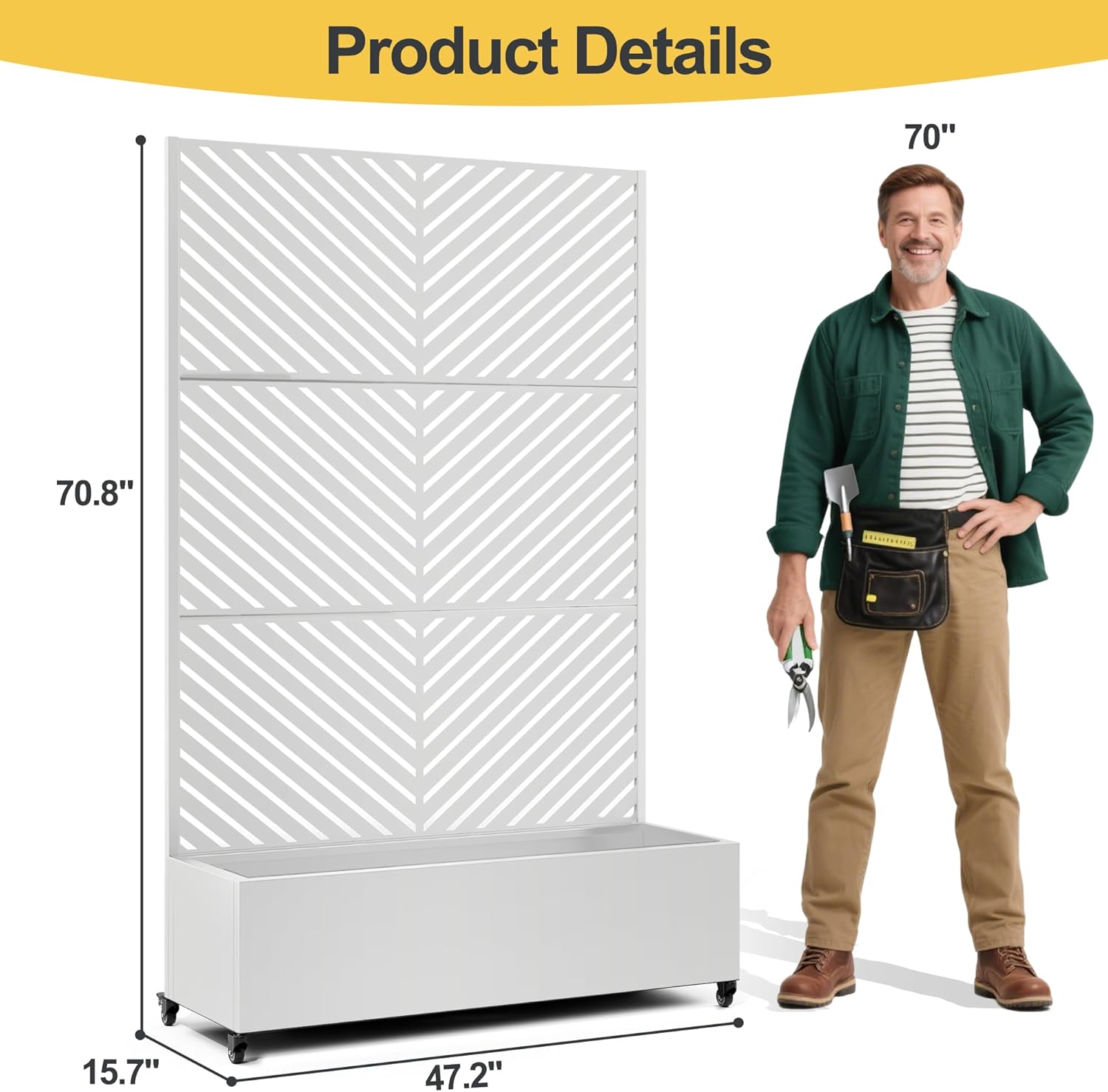 - Graceful Planter with Trellis: This graceful planter trellis is 73 inches tall, offering ample support for climbing plants and enhancing your garden or patio. Its robust design ensures stability in various conditions, making it perfect for a stunning vertical garden display.