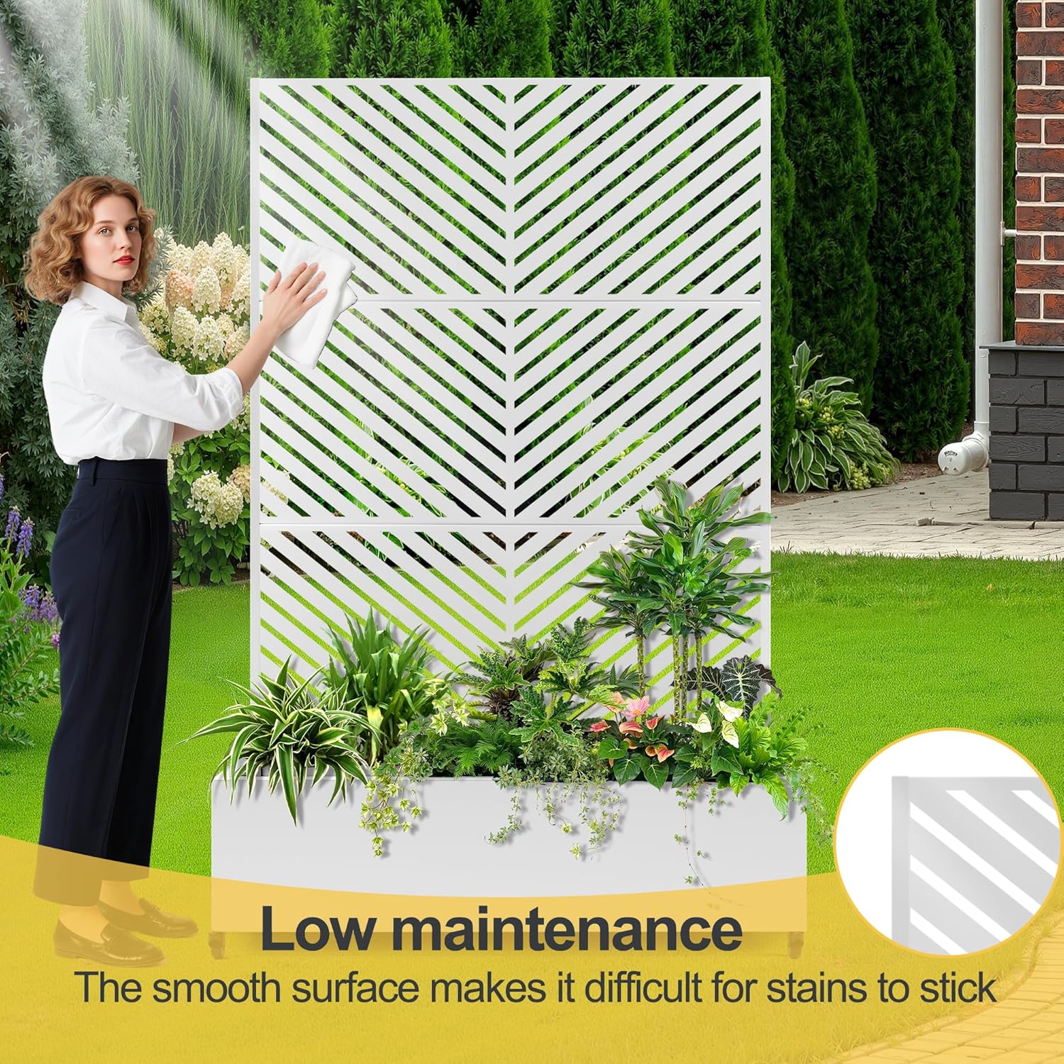 - Suitable for Various Environments This planter with trellis is ideal for gardens, balconies, patios, and greenhouses, perfect for growing flowers, fruits, vegetables, and herbs. It also serves as an privacy planters for patio, creating a tranquil space. Ideal for beautifying your area or enhancing privacy.