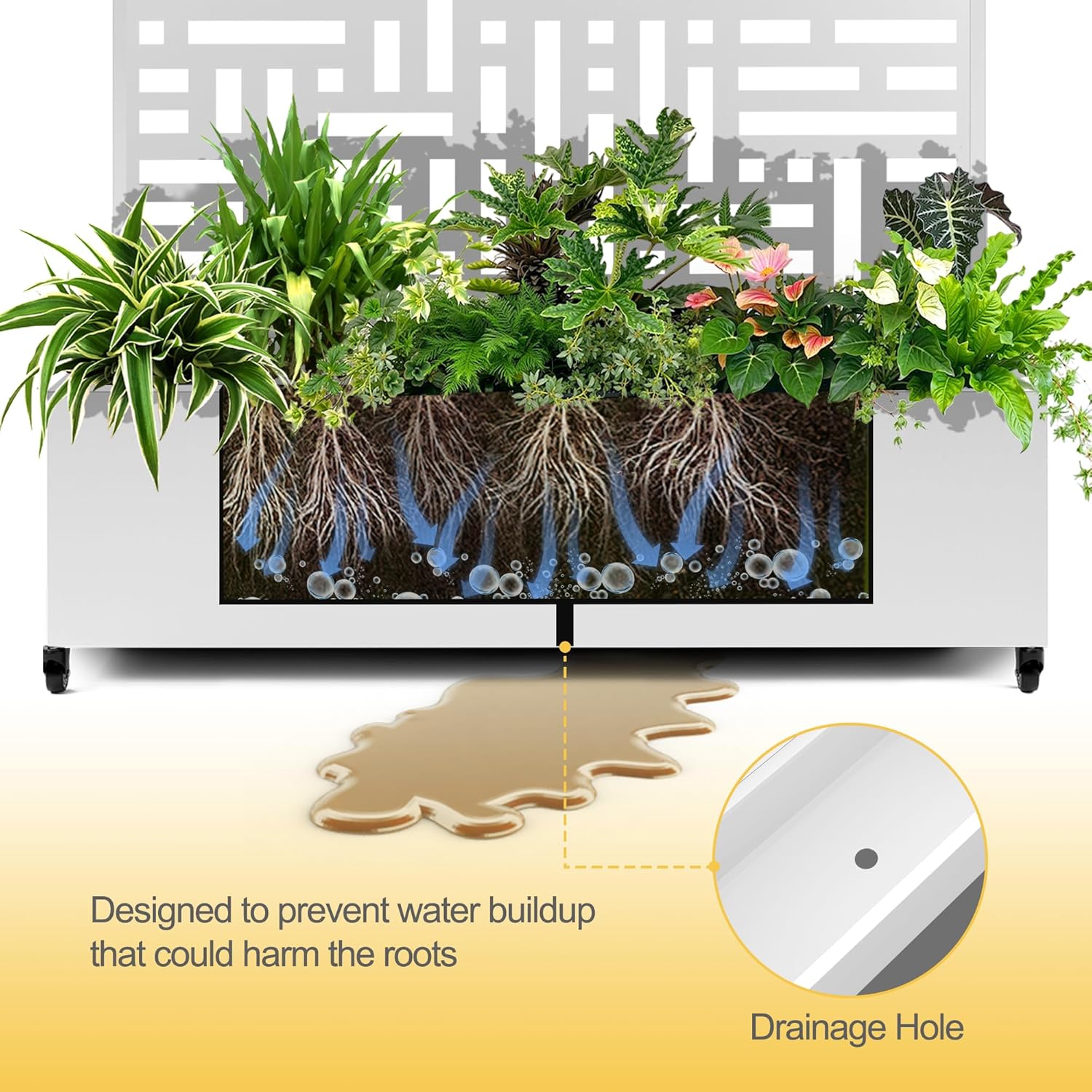 - Built-in Drainage System This planter box features a 12-inch deep planting bed equipped with drainage holes to effectively prevent water accumulation, ensuring plants receive the proper moisture for healthy growth. This design helps maintain optimal soil moisture levels and avoids issues caused by overwatering.