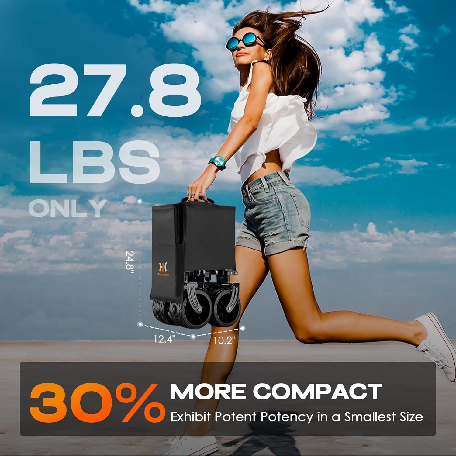 - Folds to Carry On Size: Bigger capacity, but no extra space taken. Store anywhere, grab and go. Folds to 24.8"x10.20"x12.4" (same as a standard carry-on). Tuck it in car trunks, closet corners, or balconies—no bulky storage stress. Ready whenever you need it.