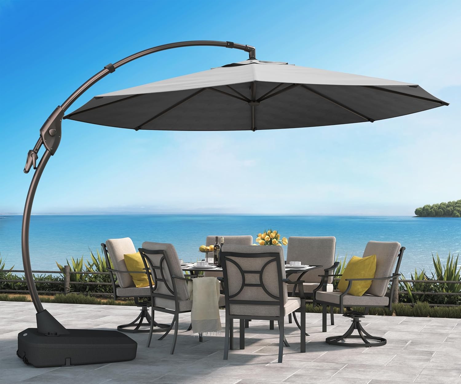 Grand patio 12 FT Sunbrella Cantilever Umbrella with Base Outdoor Aluminum Offset Umbrella with Tilt Adjustment (Charcoal, 12 FT-SUNBRELLA)