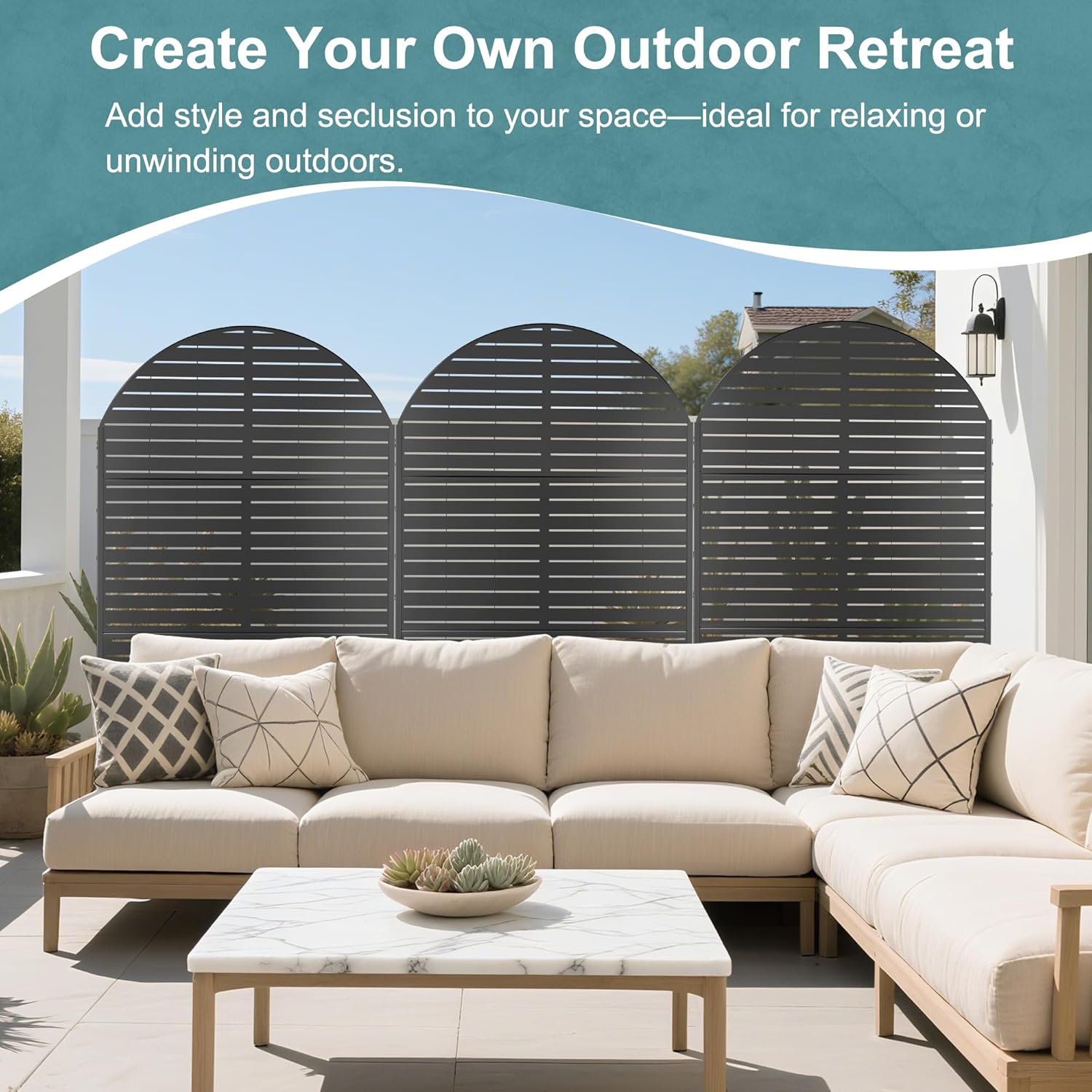 - 【Robust Metal Build】The metal privacy screen boasts a robust construction crafted from high-quality galvanized steel. Designed to endure the rigors of outdoor elements, its sturdy build guarantees prolonged durability.