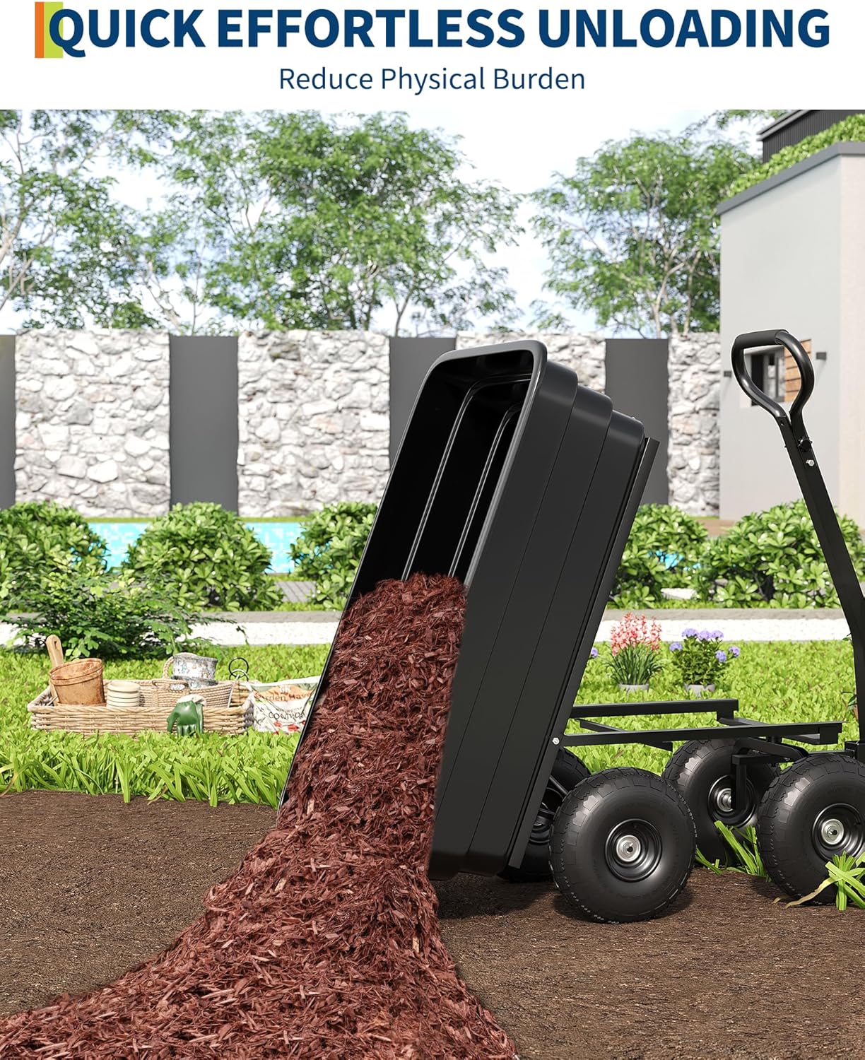 Poly Dump Cart - Heavy Duty 1200lbs Garden Cart with Quick-Release Dumping & No-Flat 13" Tires, Utility Wagon for Yard Work, Landscaping, Gardening