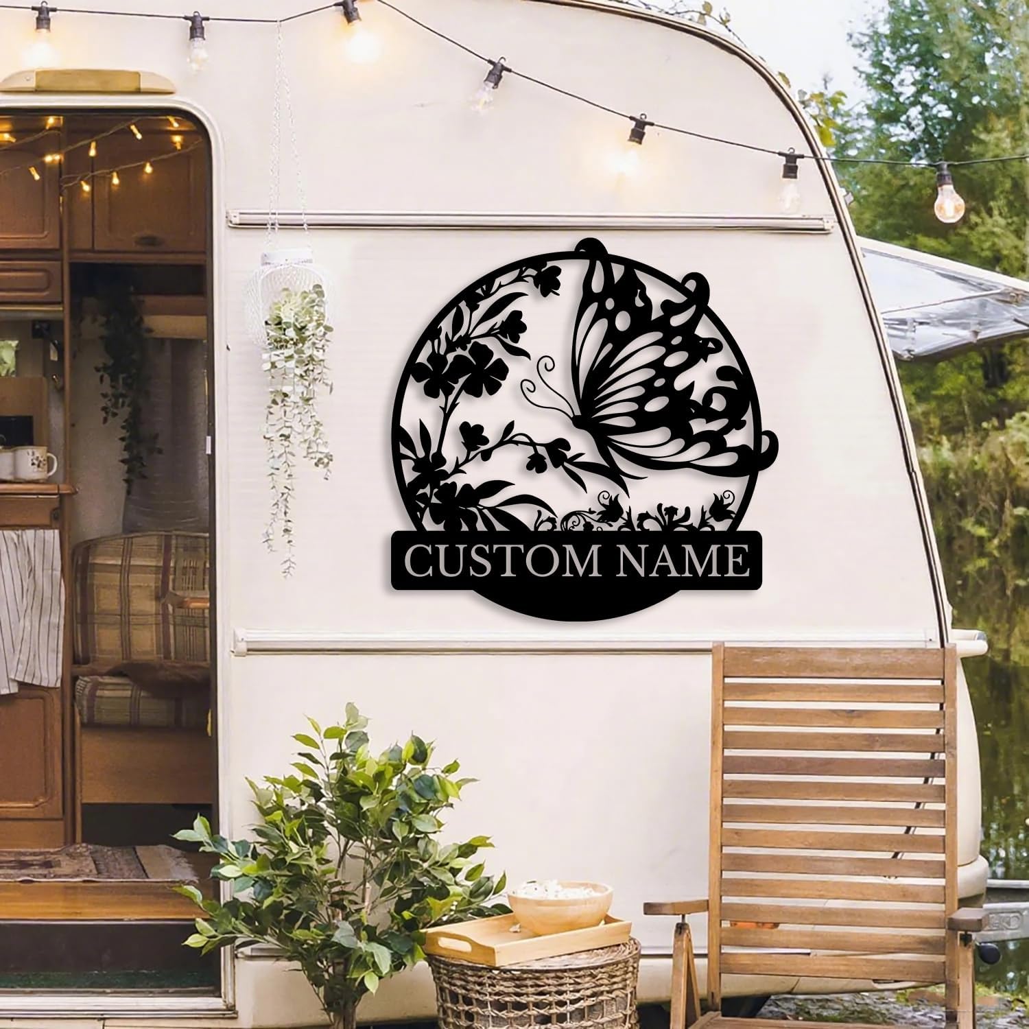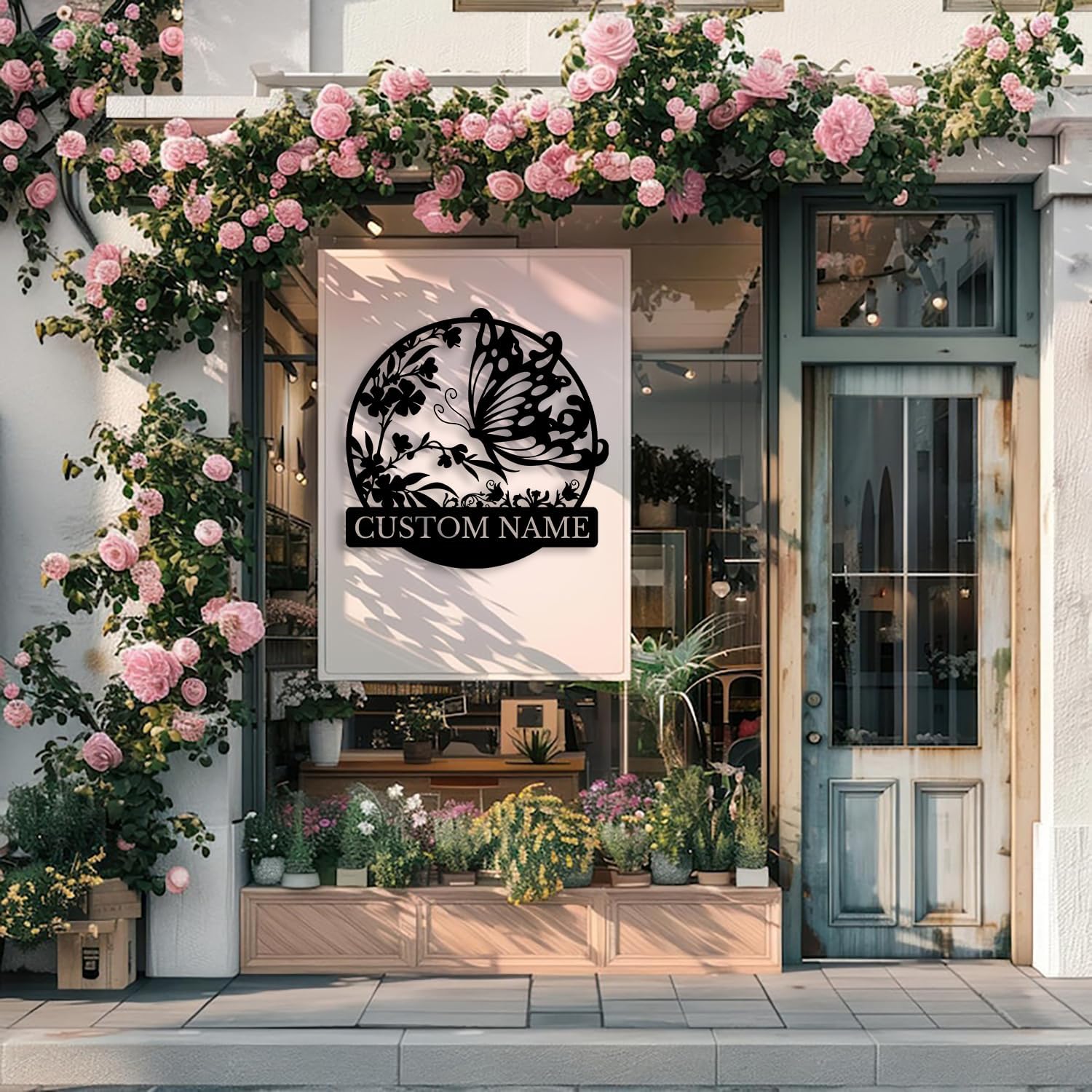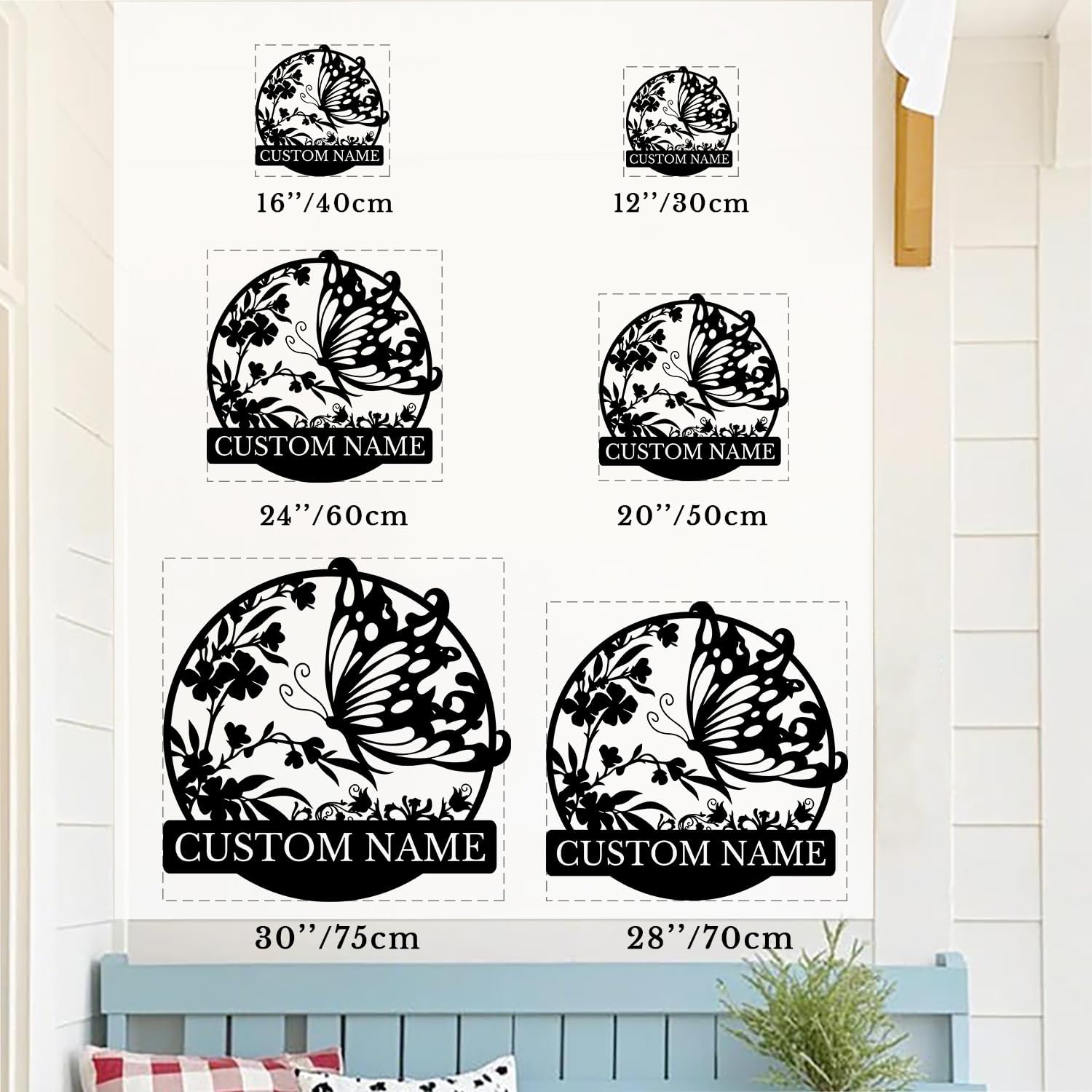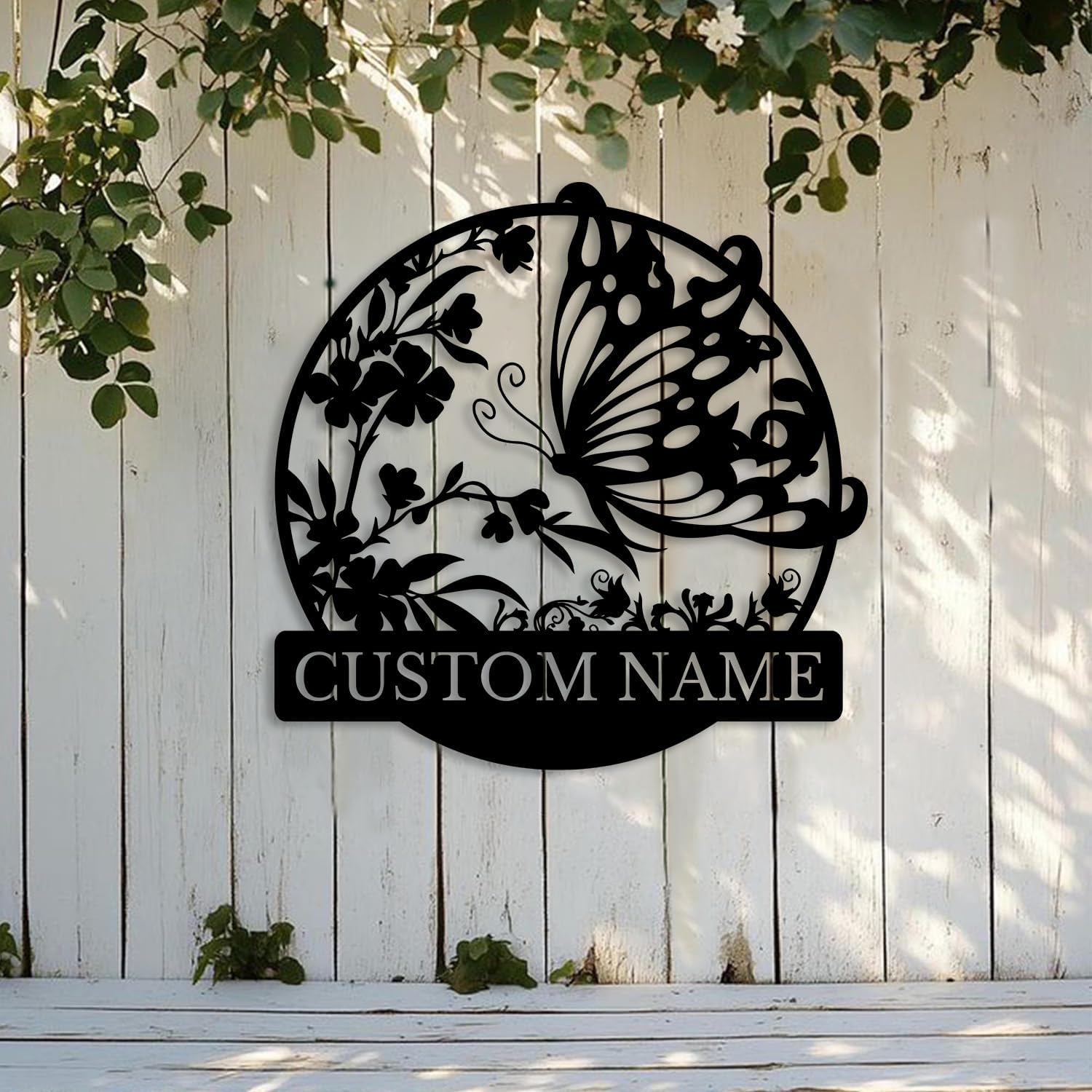 Custom Butterfly Metal Sign,Personalized Butterfly House Number Signs,Personalized Gardener Name Sign,Garden Patio Wall Decor (Style-3)