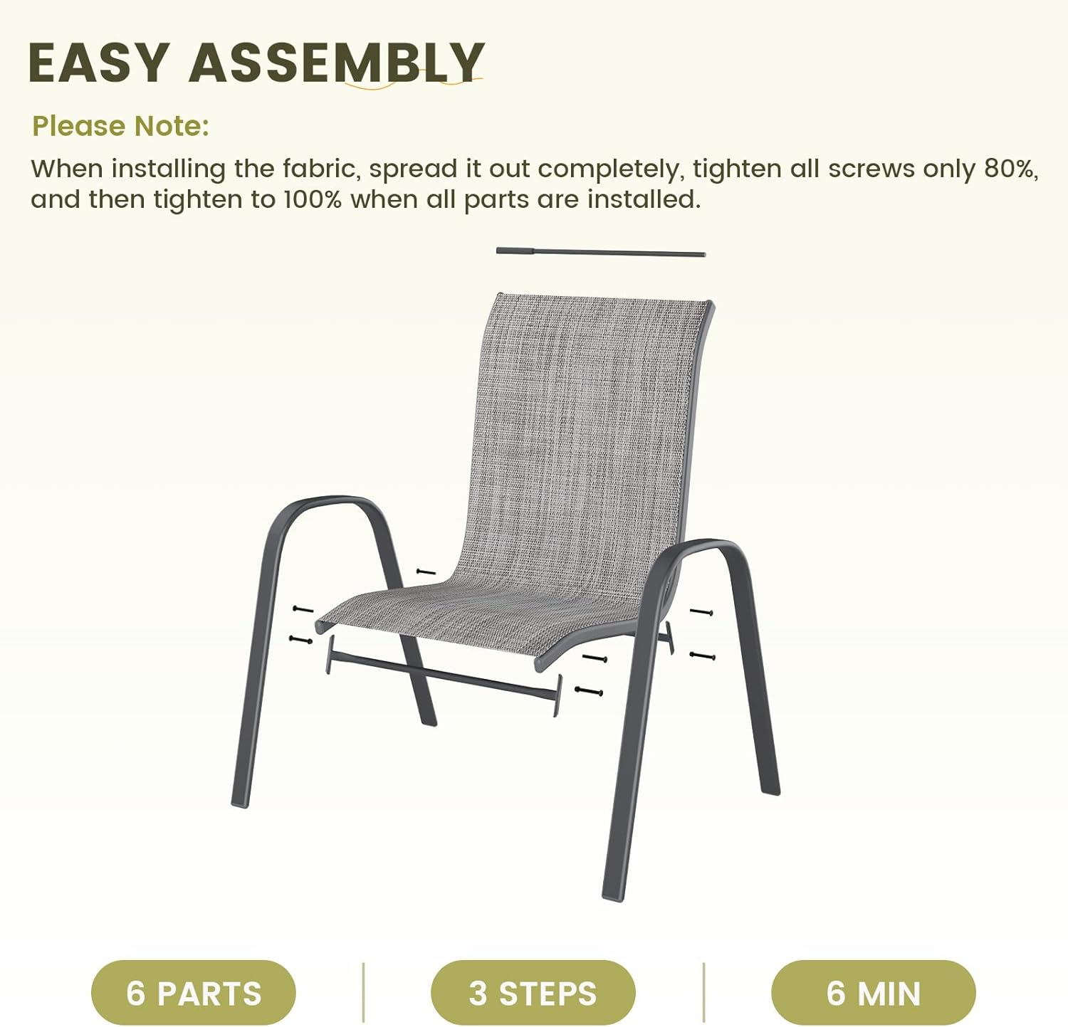 - 【OUTDOOR STACKABLE DINING CHAIRS】The stackable design allows you to both easily stack these patio chairs for compact storage, saving valuable space in your home or outdoor space. Lightweight design allows you to easily move these outdoor chairs and place them wherever you need them to be