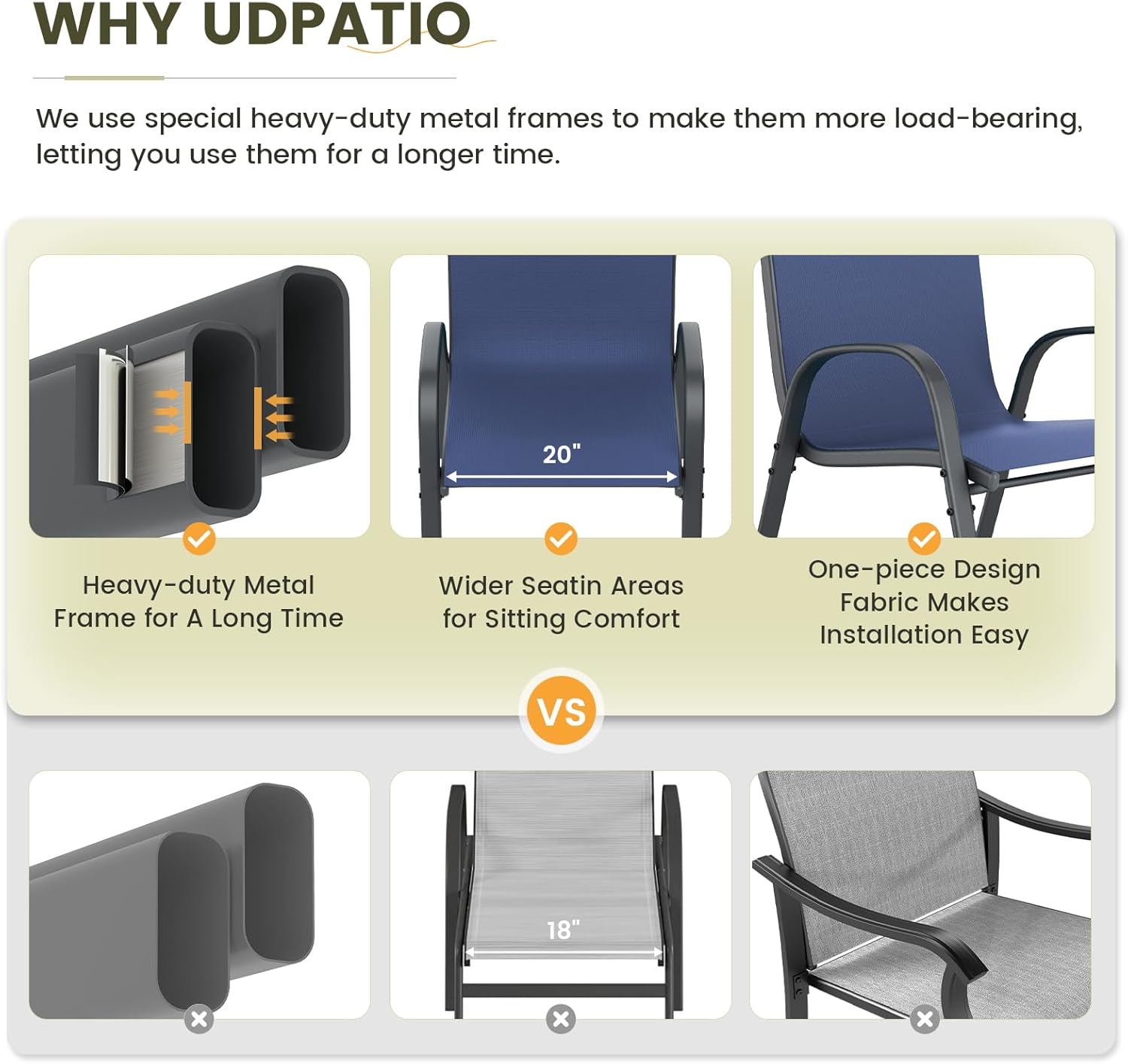 - 【STURDY & DURABLE FRAMES】Compared to traditional dining chairs set of 4, our patio table chairs are more load-bearing, with U-shaped sides to enhance stability and support, and can withstand up to 350 pounds of pressure. The frame is powder-coated to effectively prevent rust and ensure excellent weather resistance