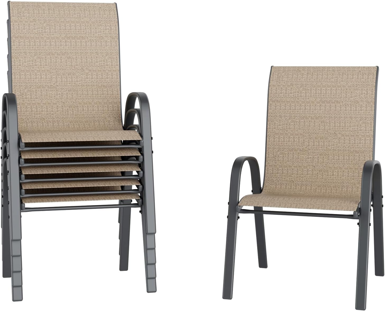UDPATIO Patio Chairs Set of 6, Stackable Outdoor Dining Chairs with High Back, Breathable Textilene Fabric Outdoor Chair All Weather, 350LBS Capacity for Garden, Backyard (Brown)