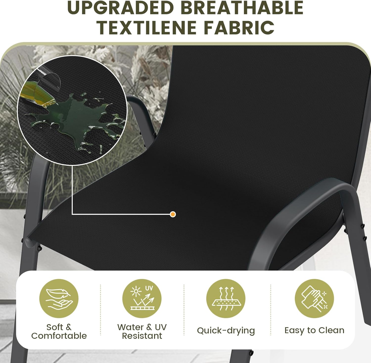 UDPATIO Patio Chairs Set of 4, Stackable Outdoor Dining Chairs with High Back, Breathable Textilene Fabric Outdoor Chair All Weather, 350LBS Capacity for Garden, Backyard (Black)