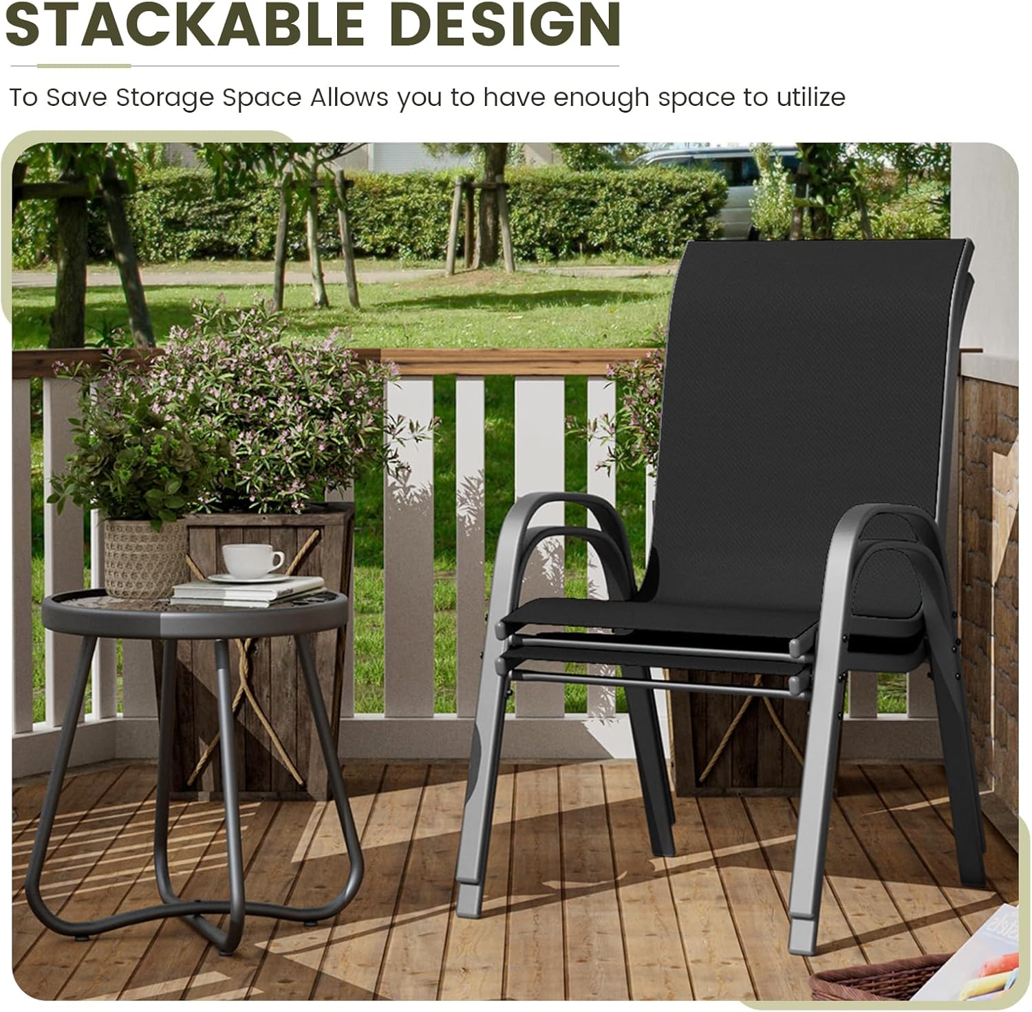 - 【OUTDOOR STACKABLE DINING CHAIRS】The stackable design allows you to both easily stack these patio chairs for compact storage, saving valuable space in your home or outdoor space. Lightweight design allows you to easily move these outdoor chairs and place them wherever you need them to be