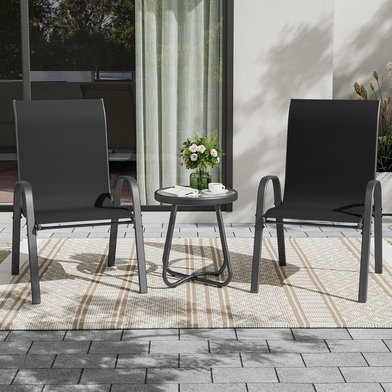 UDPATIO Patio Chairs Set of 2, Stackable Outdoor Dining Chairs with High Back, Breathable Textilene Fabric Outdoor Chair All Weather, 350LBS Capacity for Garden, Backyard (Black)
