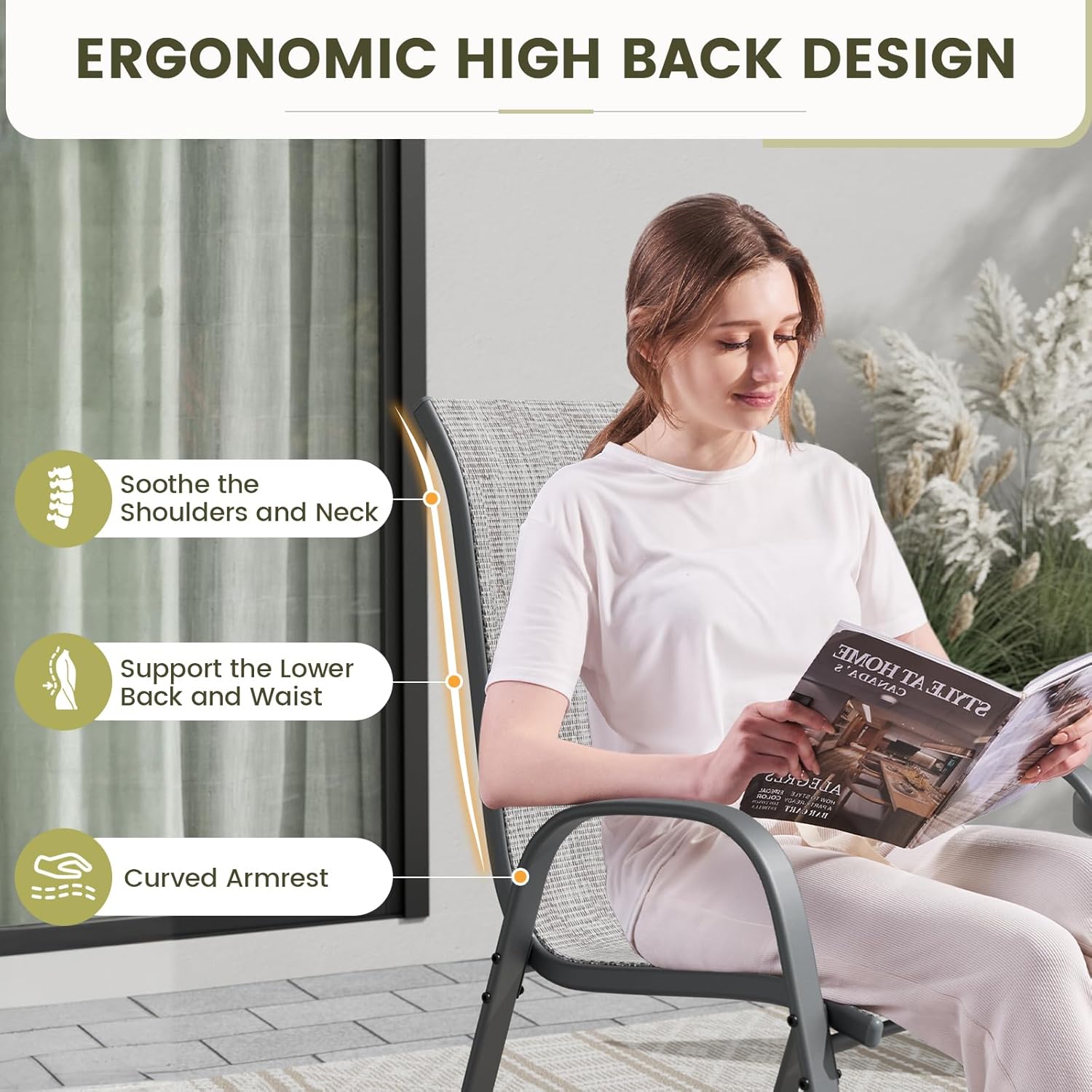 - 【OUTDOOR STACKABLE DINING CHAIRS】The stackable design allows you to both easily stack these patio chairs for compact storage, saving valuable space in your home or outdoor space. Lightweight design allows you to easily move these outdoor chairs and place them wherever you need them to be