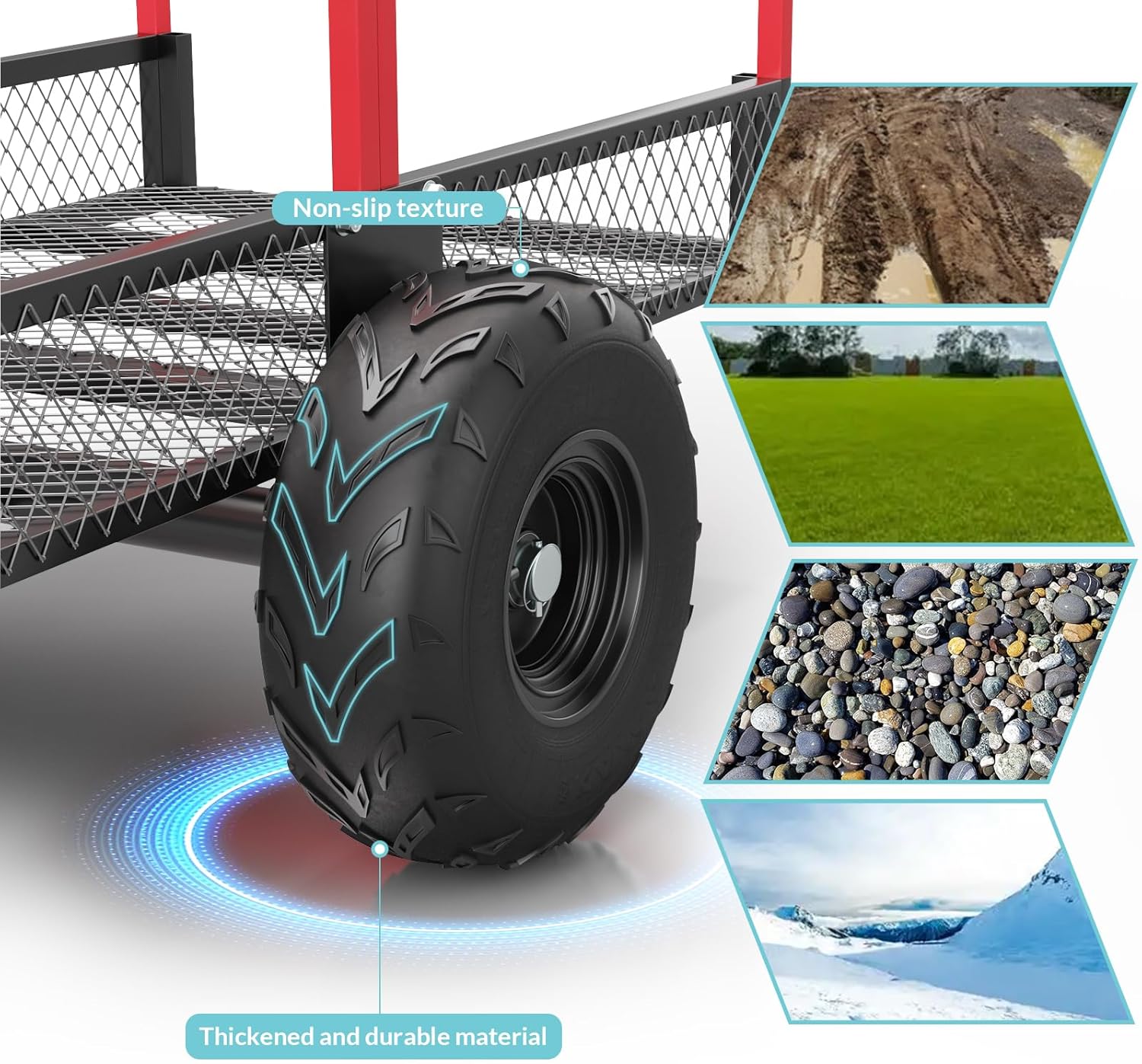 - Outstanding Comfort and Durability: The 17 "x 9" pneumatic tires offer excellent shock absorption, allowing for smooth navigation on rough surfaces. The frame features an enhanced coating to increase strength and ensure long-lasting durability in outdoor conditions. Enjoy easy towing with our trailers - your ultimate partner for yard work!