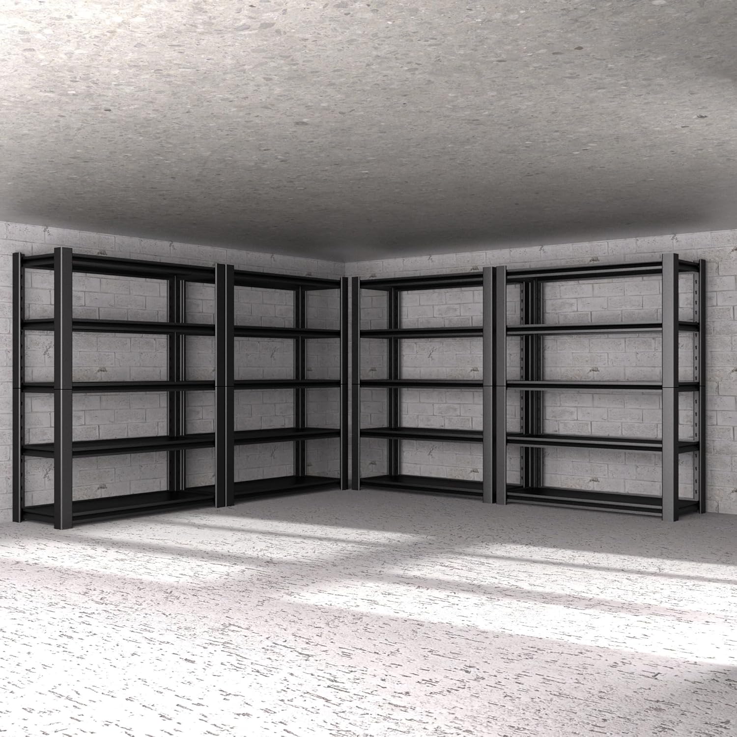 - 【Tool-Free Boltless Assembly】 No screws or bolts required! This garage storage rack uses a simple interlocking design, allowing you to assemble or adjust shelf heights in minutes with just a rubber mallet. Perfect for garage shelving units or pantry shelving in your home.