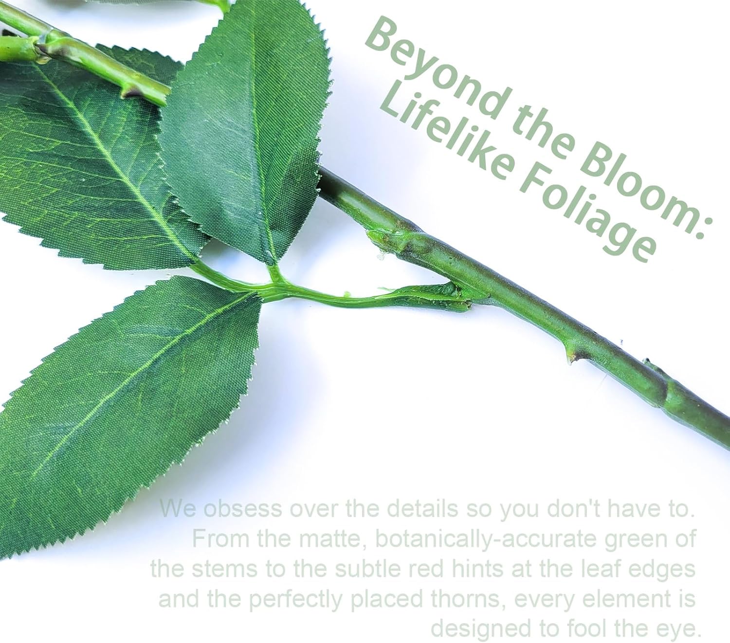 - 1. Unbelievably Realistic Look & Feel: Expertly crafted with premium silk petals and plastic materials, these faux roses feature intricate details and natural color variations. The realistic green leaves and thorny stems make them indistinguishable from real flowers, offering everlasting beauty without any maintenance.