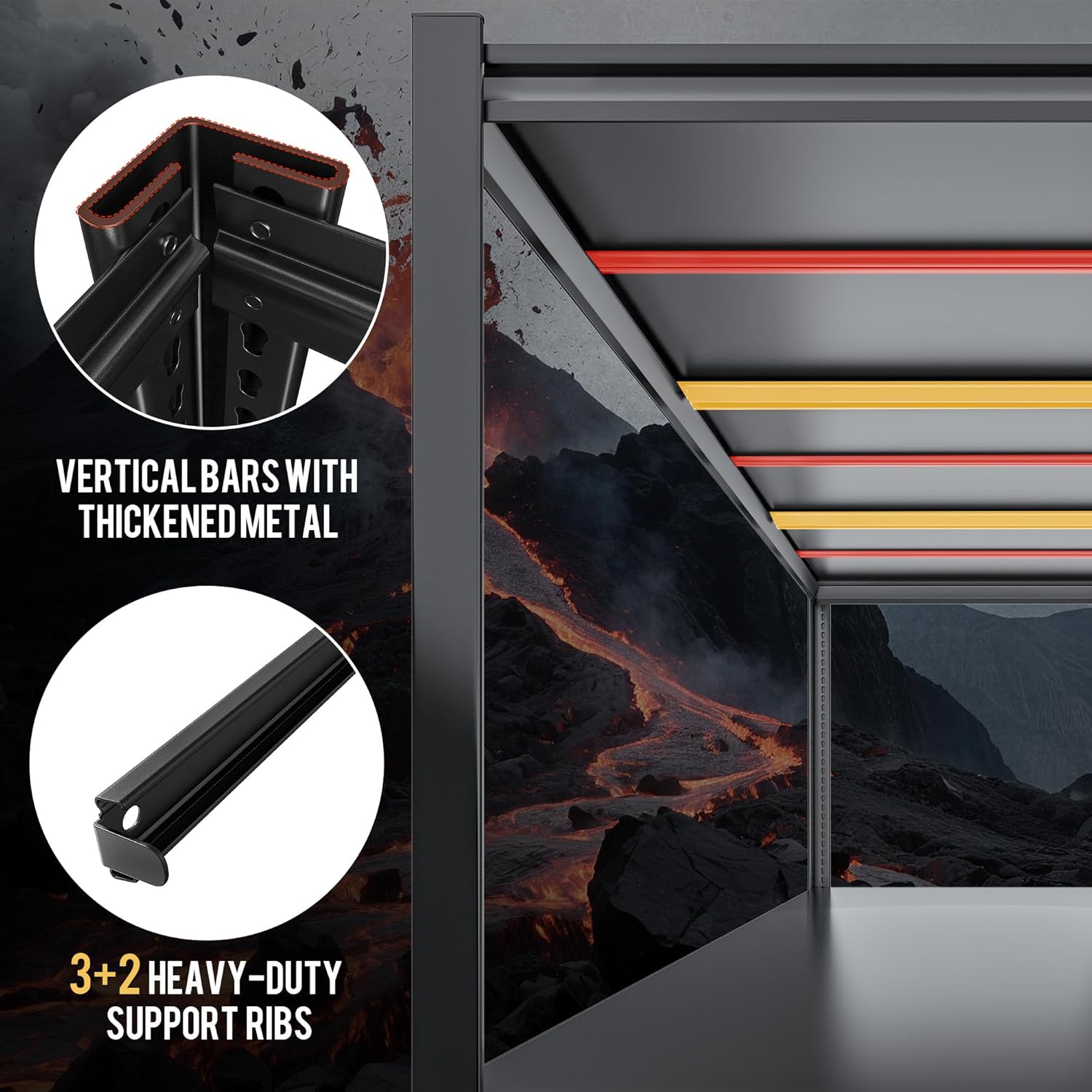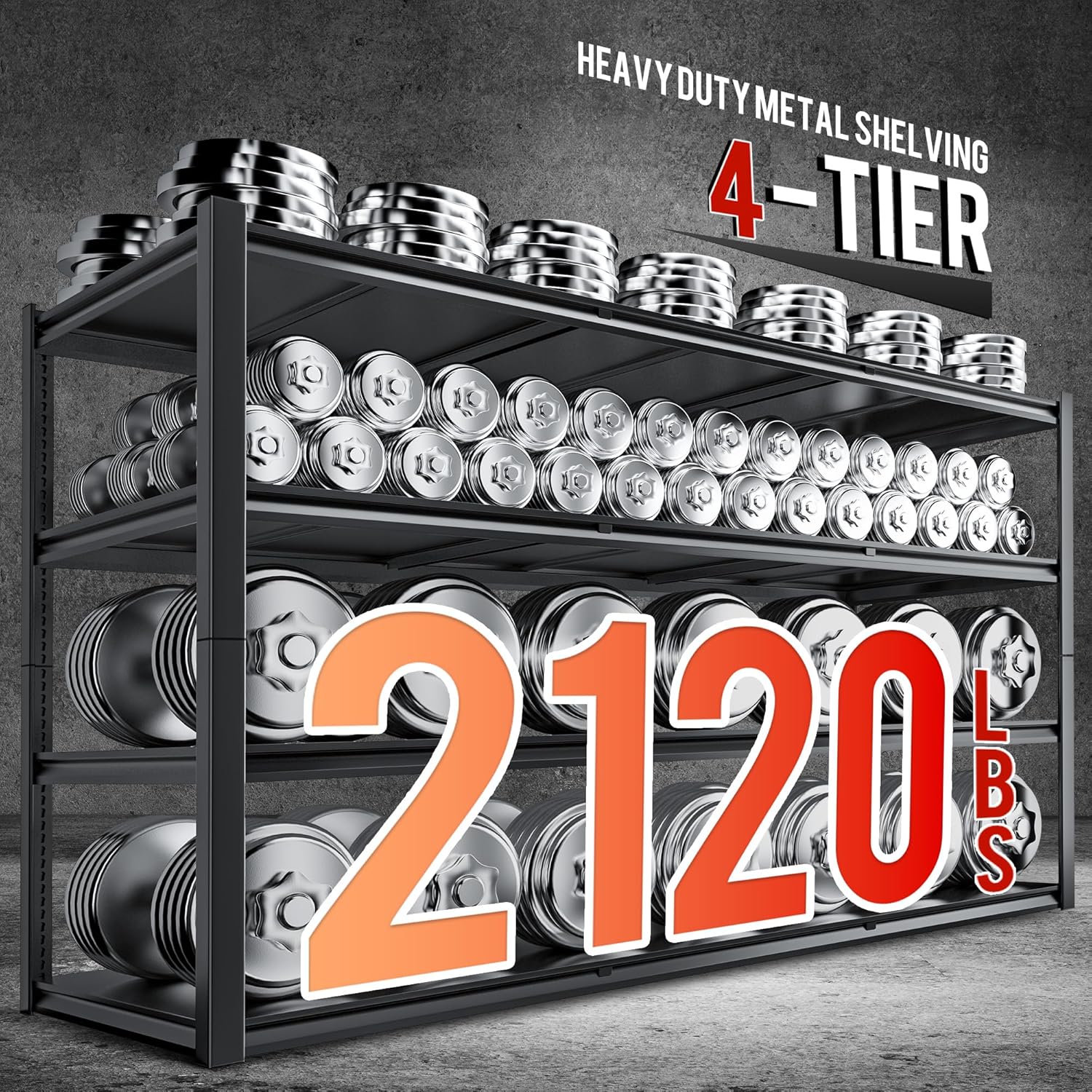 - 【Heavy Duty Shelving 2120 LBS Capacity】 Supported by a reinforced frame with 5 sturdy support ribs, this unit has a huge total weight capacity of 2650 pounds (530 pounds per rack). Store heavy vehicle parts, aquaculture fish tanks, toolboxes, camping equipment, sports goods, paint cans, potted plants and books with confidence without worrying about bending or toppling over