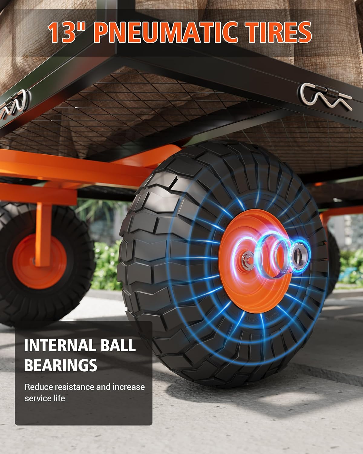 - Conquer Every Landscape: 13" silent-roll tires eat through mud and snow without rattling your tools or waking the napping baby. Wide treads stay stable on slopes and uneven paths β no more wrestling stuck wheels mid-project